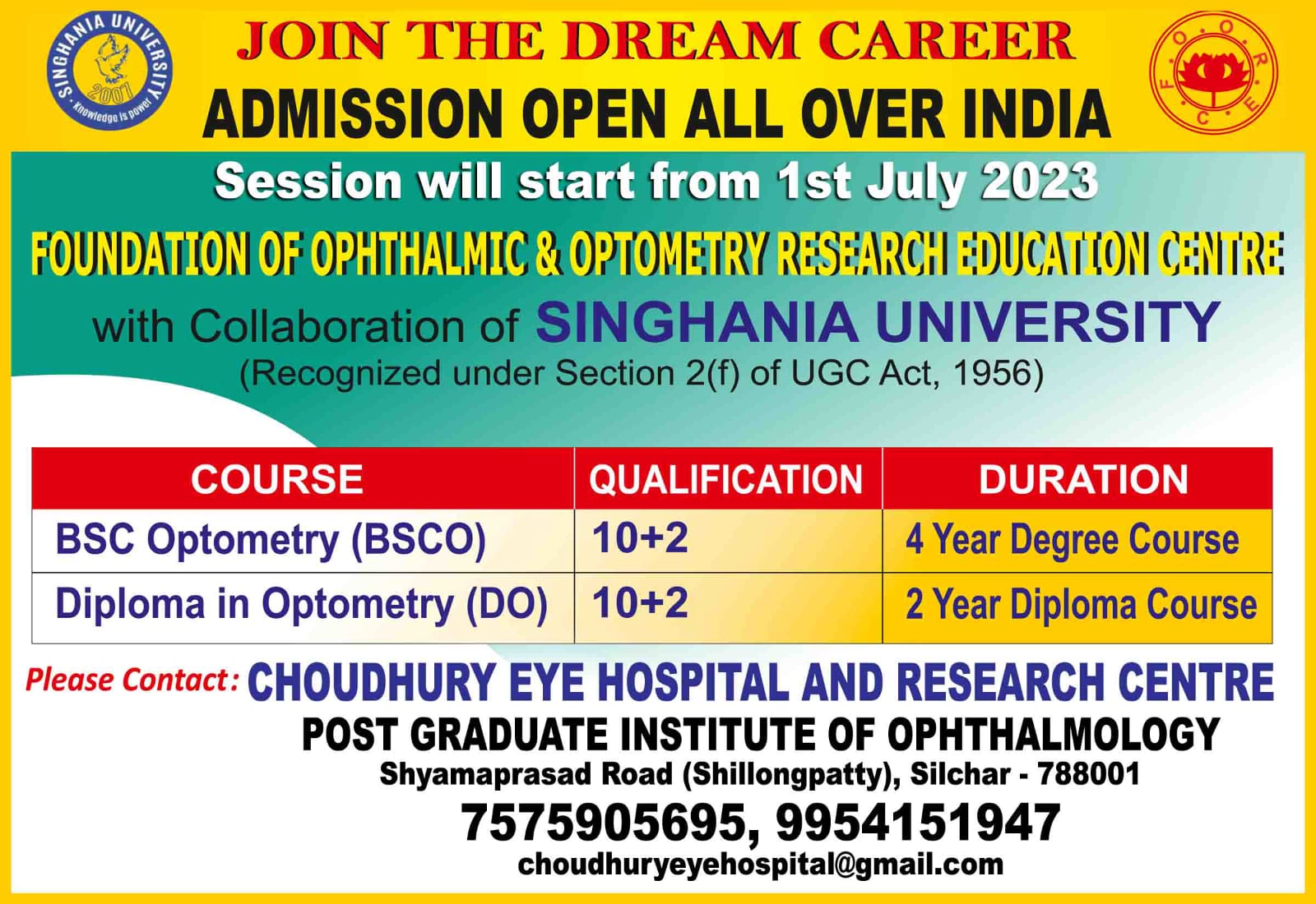 He was joined by Dr Haimanti Choudhury and Dr Himadri Choudhury and the clinic attained the status of a hospital in 2015. Choudhury Eye Hospital and Research Centre is the only tertiary eye care centre in South Assam. It caters to the need of whole of Barak Valley, neighboring states of Tripura, Manipur, Meghalaya and Mizoram and also Bangladesh..